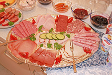 - verschiedene Schinkensorten, Aufschnittplatte auch mit Geflügel