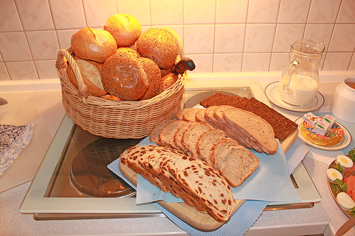- ostfriesisches Schwarzbrot, Graubrot, Weltmeister und Rosinenbrot